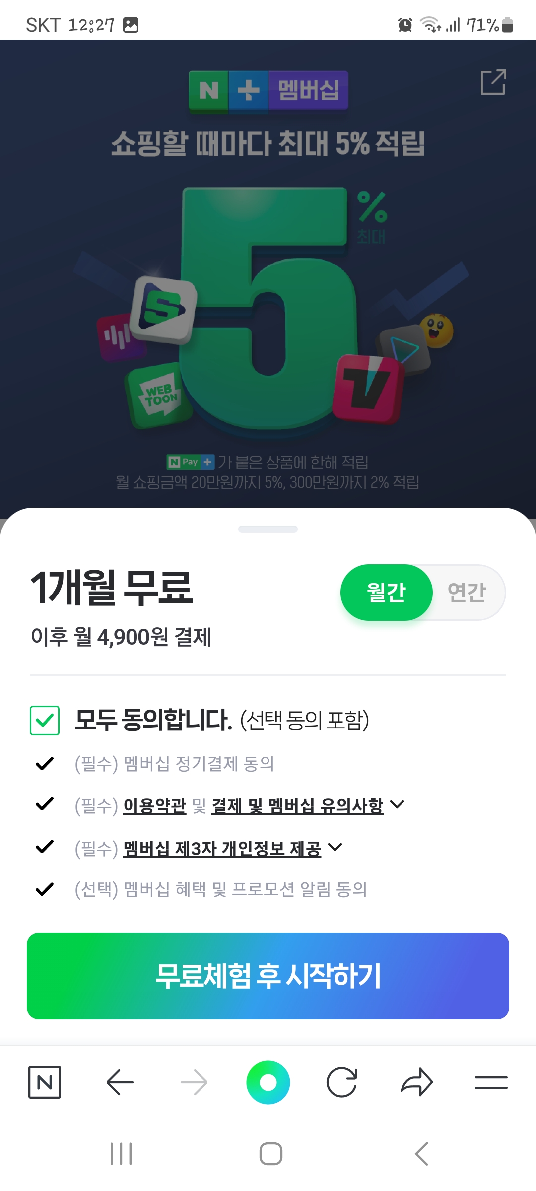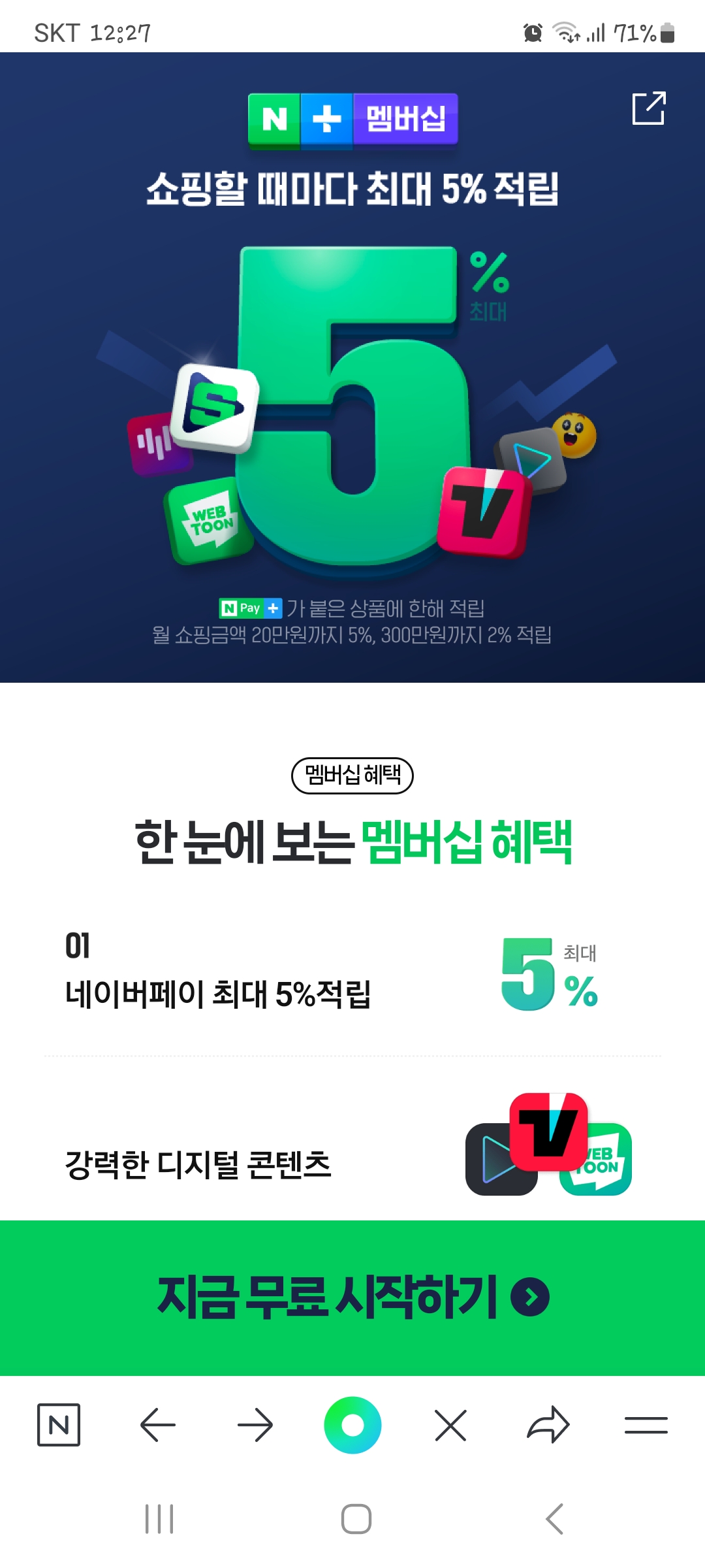 네이버 플러스 멤버십을 이용하여 한 달간 무료로 티빙을 이용할 수 있습니다.